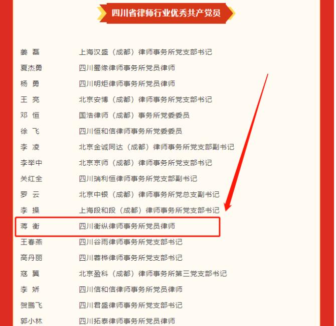 在此,给予他们最热烈的祝贺!祝愿他们在四川省律师协会、成都市律师协会的指导下,认真履行专门、专业工作委员会委员的职责,优良完成四川省律师协会、成都市律师协会和司法行政部门下达的工作任务。