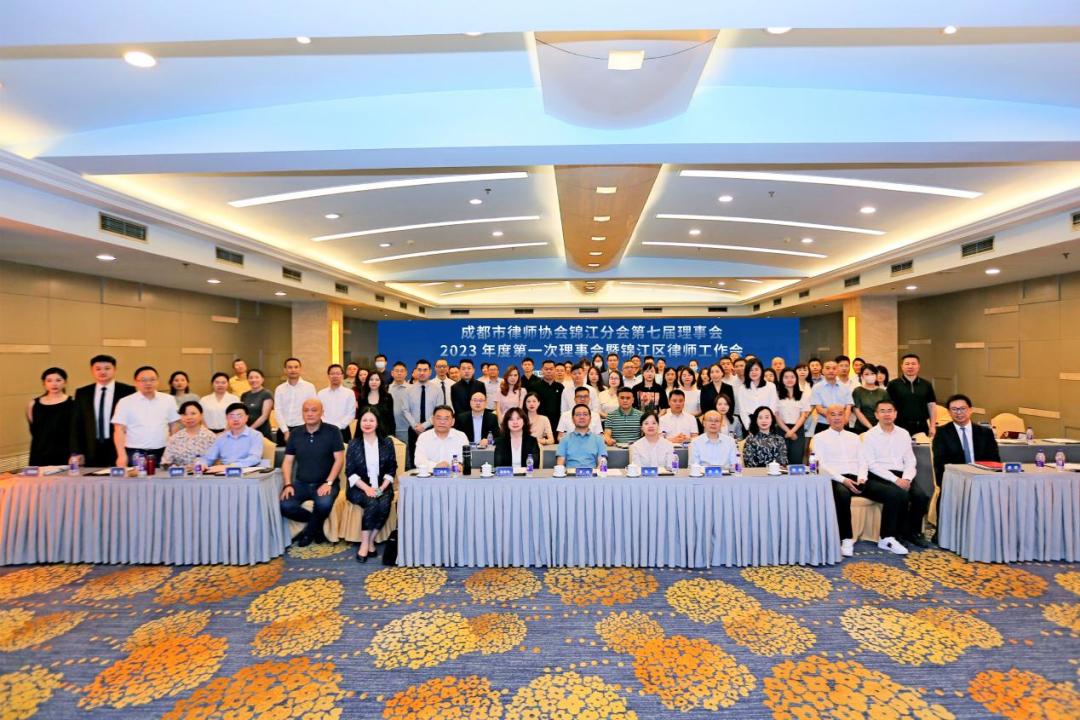 2023年度第一次理事会暨锦江区律师工作会议在成都望江宾馆五福厅隆重举行,锦江区司法局党组书记、局长罗伟、锦江区司法局党委书记徐颖、市律协副会长胡海玲、市律协监事会分会/工作站监督委员会主任蒲永、锦江区分会全体理事、律所主任代表等等参加了会议。