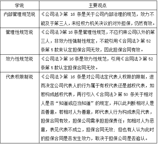 对该条款的理解经历了从“内部管理规范说”到“管理性规范说”、“效力性规范说”直至最近的“代表权限制说”的倾向变化。