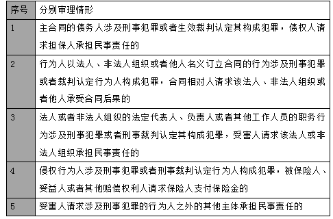 明确了五种情形下应当分别审理的情形,司法实务中应当注意在这五种情形下会将民事和刑事分别审理。