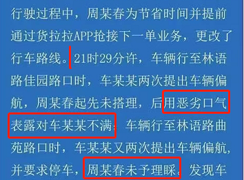 通过研究货拉拉平台规则并采访多位货拉拉司机,货拉拉平台仅作为一家网络货运平台为用户提供货物运输服务,平台本身并没有要求司机运输货物时必须按照货拉拉APP平台导航行驶,货拉拉司机们也纷纷表示“不按导航走是常态”。车某某这一单是一口价,司机根据自己的经验选择运输路线,虽然增加了里程增加了油耗,但是节省了双方的时间,不论从经济上还是时间上,车某某都不吃亏,综合来看甚至是赚了。但是就是这么一件好事,却由于双方沟通不畅,最终却演变成了坏事。