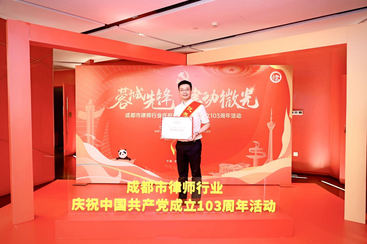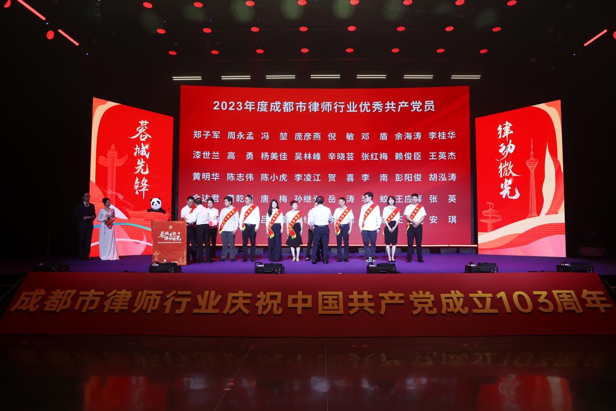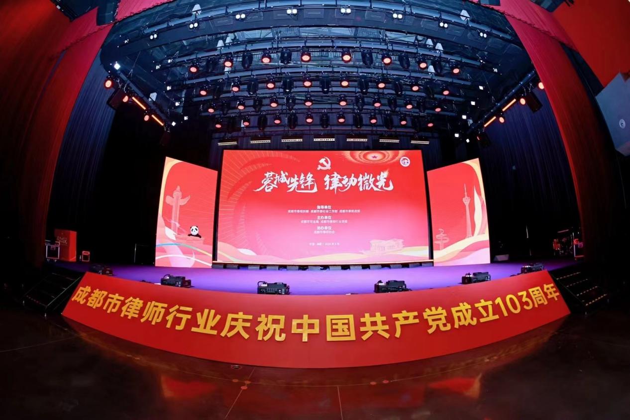为隆重庆祝中国共产党成立 103 周年,不断增强党员律师荣誉感、归属感和党组织向心力、凝聚力,2024年6月27日成都市司法局、成都市律师行业党委举办“蓉城先锋 律动微光”市律师行业庆祝中国共产党成立 103 周年活动。