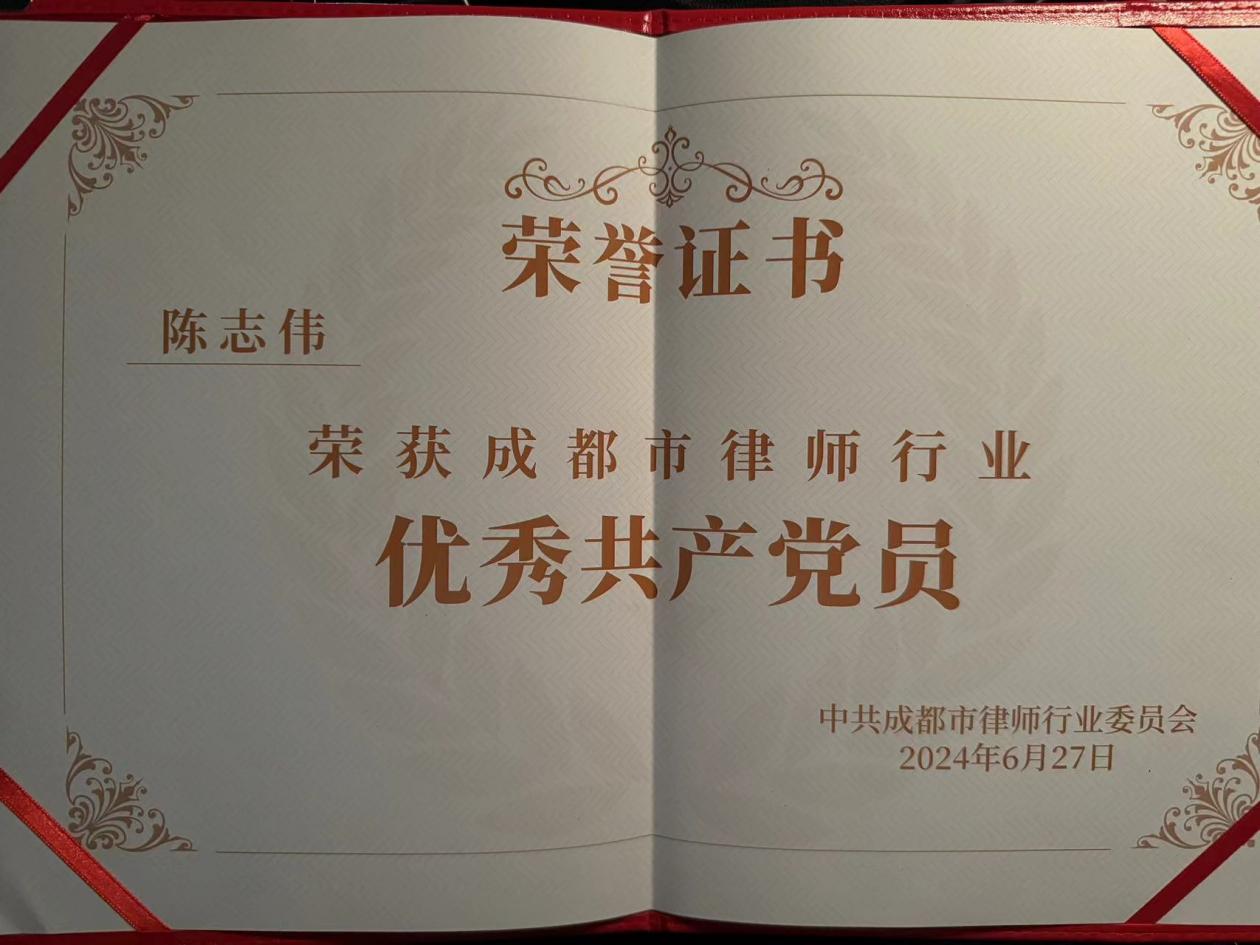 祝贺我所陈志伟书记荣获成都市律师行业“优秀共产党员”荣誉称号