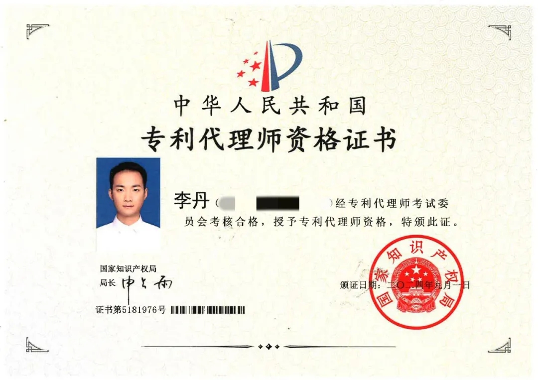 恭喜我所李丹律师获得专利代理师资格证书